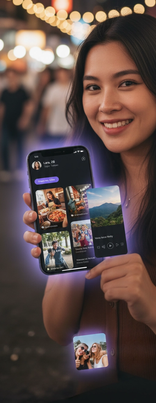 Share your vibe with photos, videos, and voice notes. No filters, just authentic moments.
